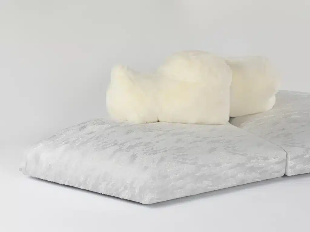 De PACK sofa is geïnspireerd op de serene schoonheid en majestueuze kracht van het poollandschap. Het ontwerp doet denken aan een ijsberg die drijft in een kalme zee, met een grote, pluche beer die comfortabel bovenop ligt. Deze beer, gemaakt van zacht en luxueus materiaal, fungeert als een unieke rugleuning, terwijl de rest van de sofa zich ontvouwt als een ruim ligvlak. Dit ontwerp is niet alleen visueel adembenemend, maar ook symbolisch: het nodigt uit tot ontspanning en reflectie, alsof u zich in een serene en vredige wereld bevindt.