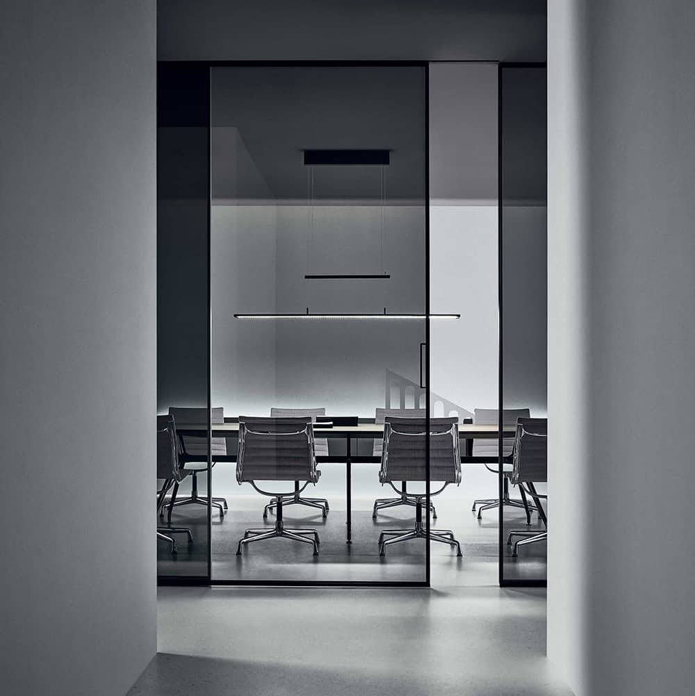 Spazio belichaamt de Rimadesio-filosofie: een technologisch geavanceerd systeem dat design en functie samenbrengt, volledig in dienst van het architecturale plan.